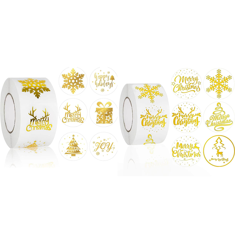 透明烫金圣诞节贴纸PVC礼盒包装密封贴标签圣诞派对防水装饰