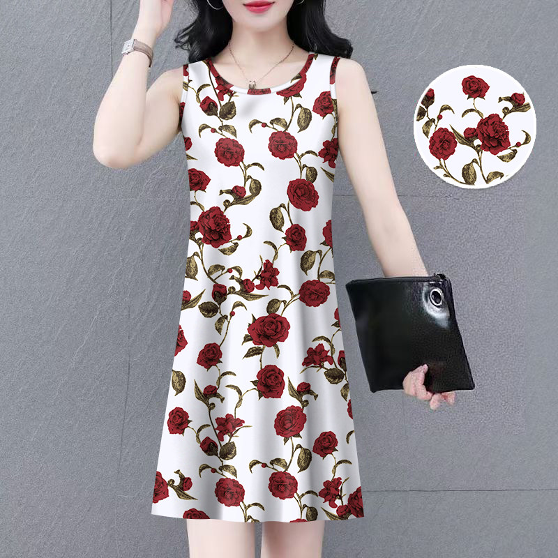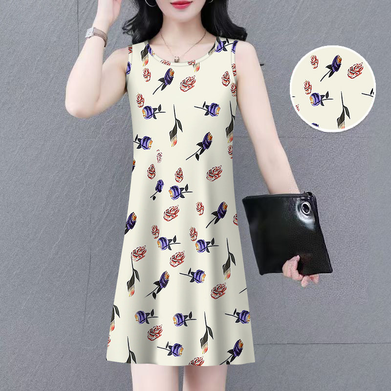 捡漏中长款印花无袖2025夏季新款连衣裙内搭打底背心裙百搭裙子