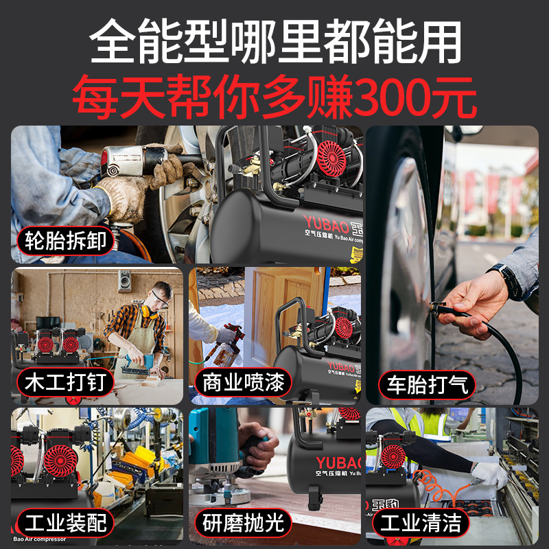 玉豹静音空压机无油高压气泵220V空气压缩机工业级打气泵木工喷漆