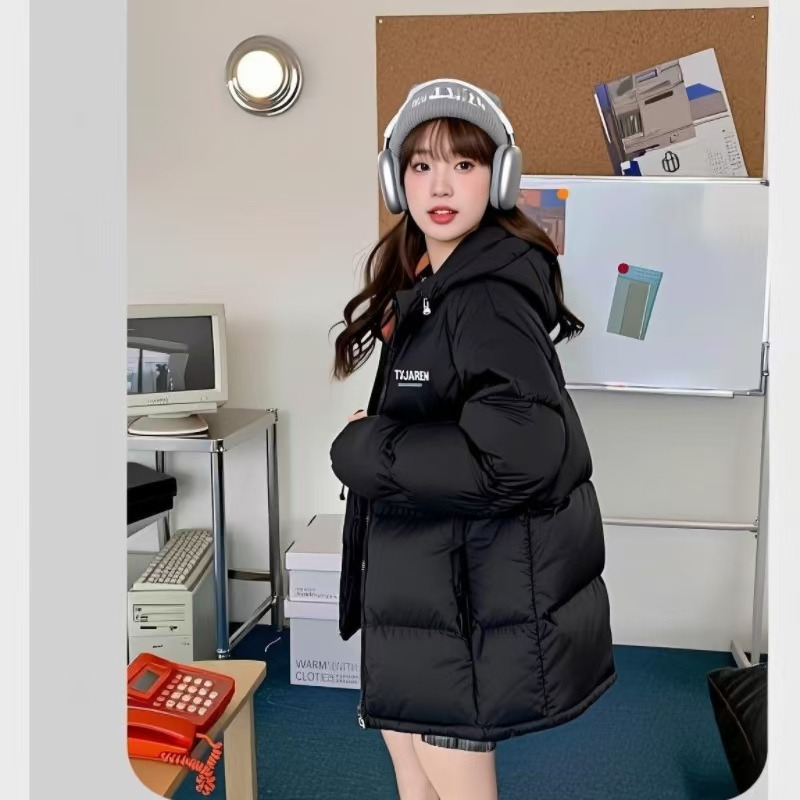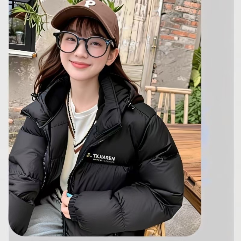 亮世秋黑色棉服女 短款连帽2025年新款冬季情侣男加厚面包羽绒服