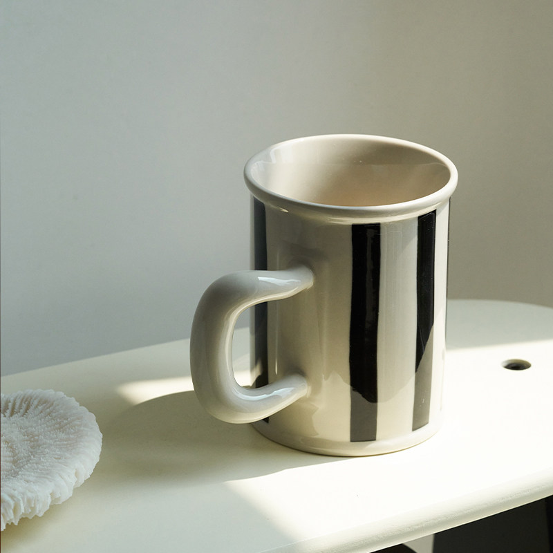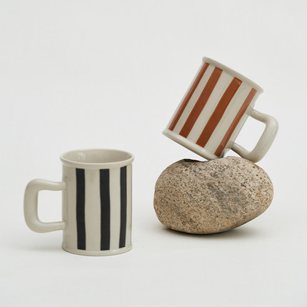 莫语 手绘条纹陶瓷马克杯 把手手工原创设计通心粉杯 ins风咖啡杯