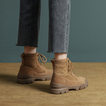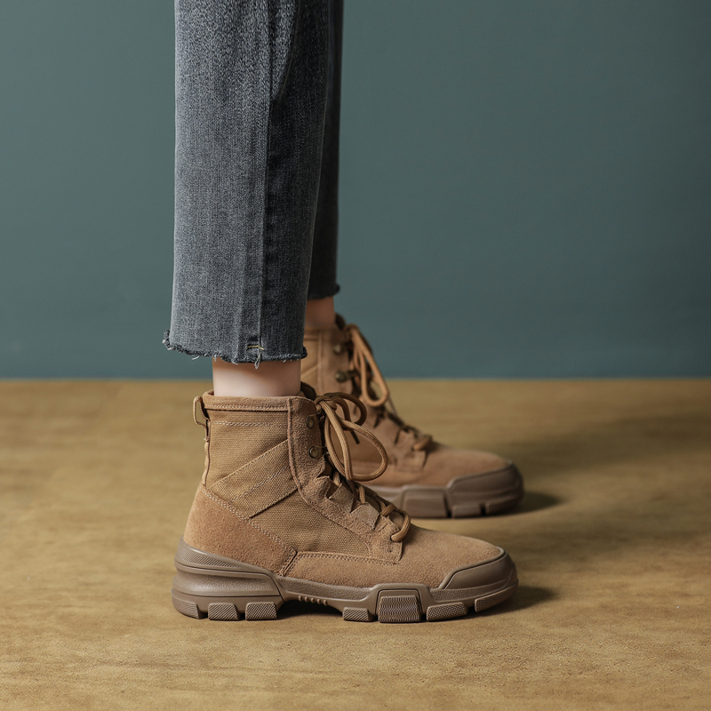 真皮帆布马丁靴女2025新款春夏季覆古情侣登山沙漠短靴女春秋单靴