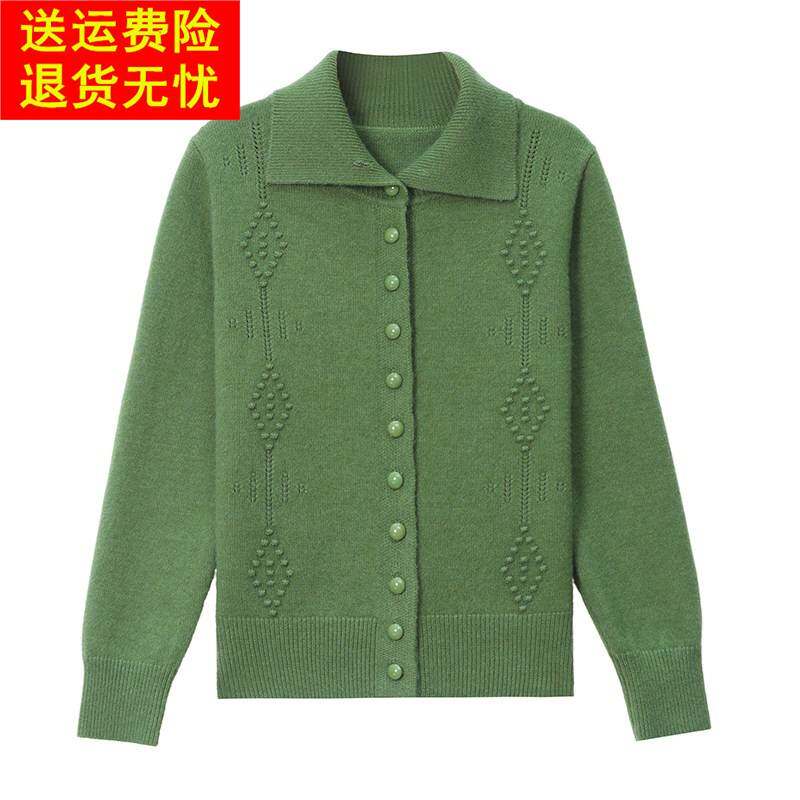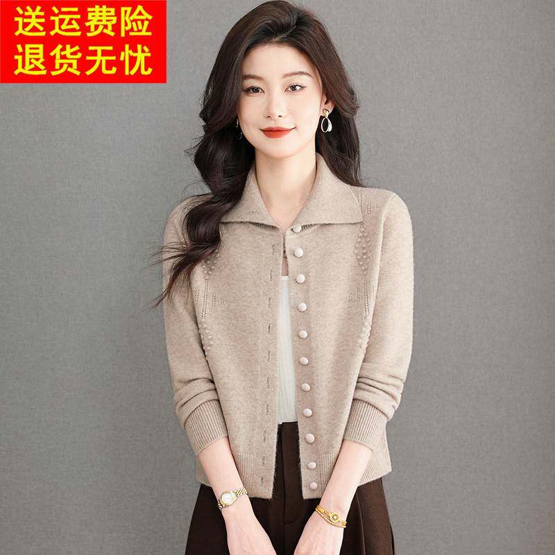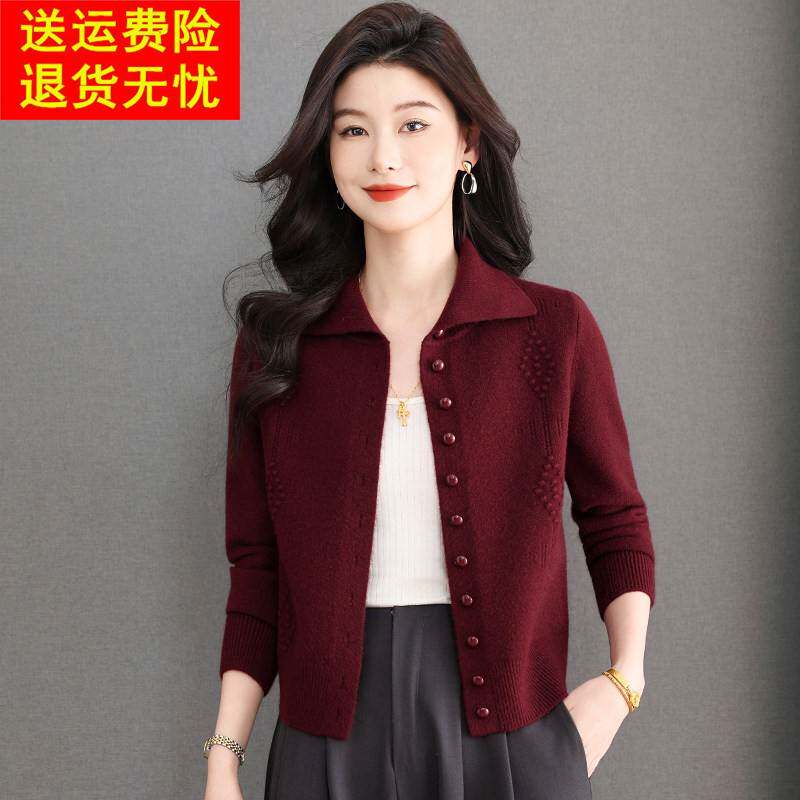 鄂尔多斯市纯羊毛衫女秋冬新款翻领显瘦针织开衫短款内搭毛衣外套