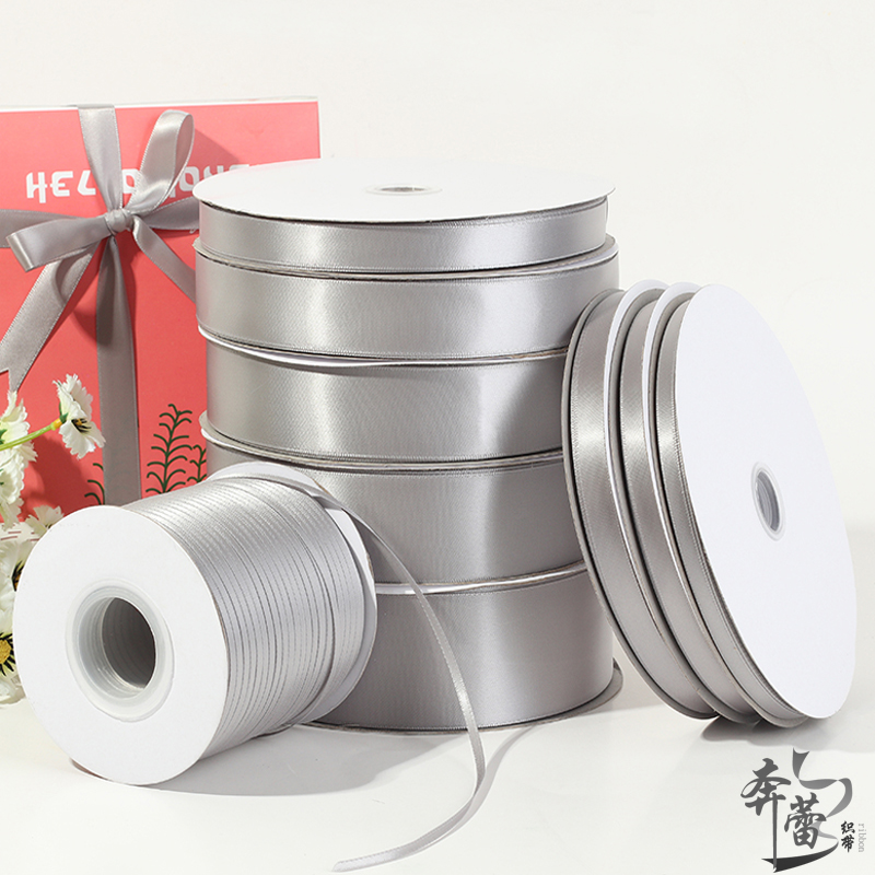 银灰色加密涤纶缎带婚庆彩带礼品包装丝带发饰发夹烘焙织带绸带