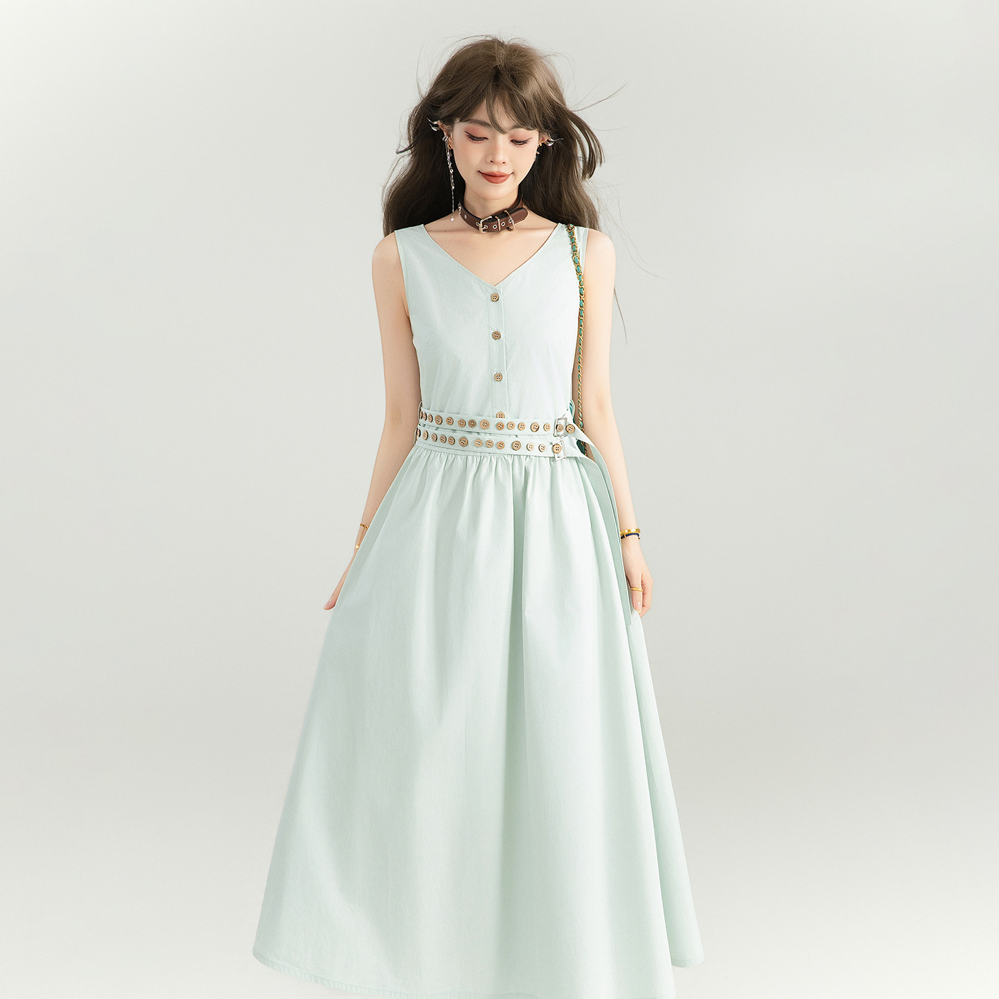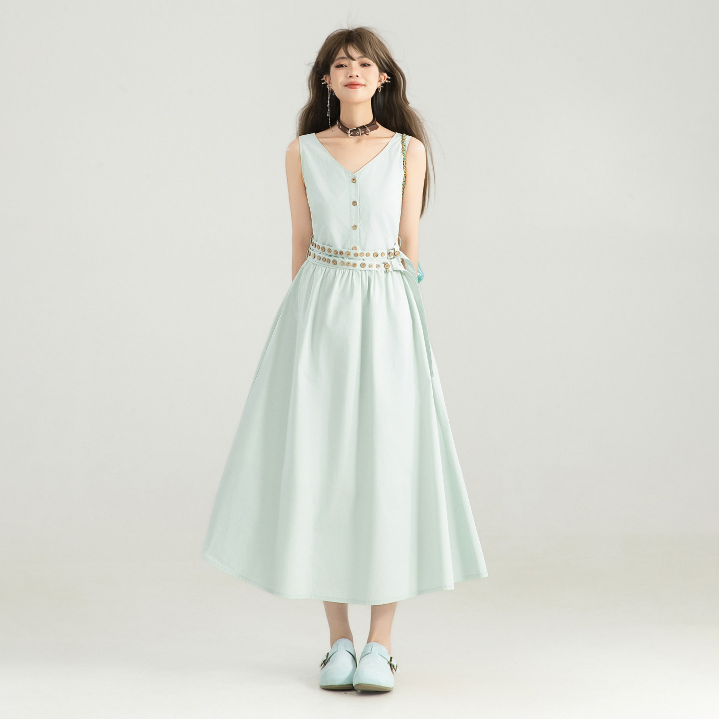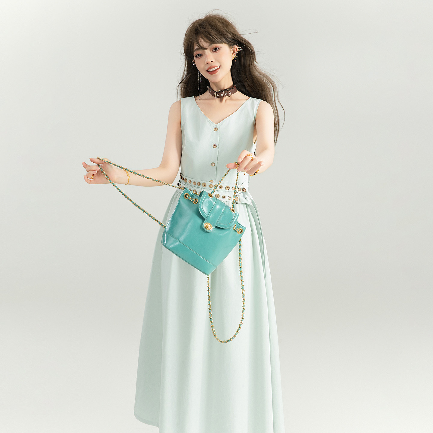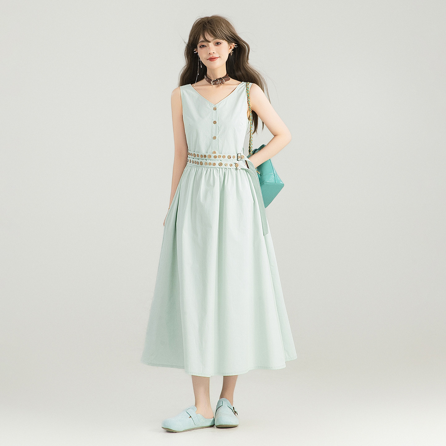 KEIKO 薄荷绿色无袖连衣裙26春夏帕斯蒂尔风简约高智显瘦背心长裙