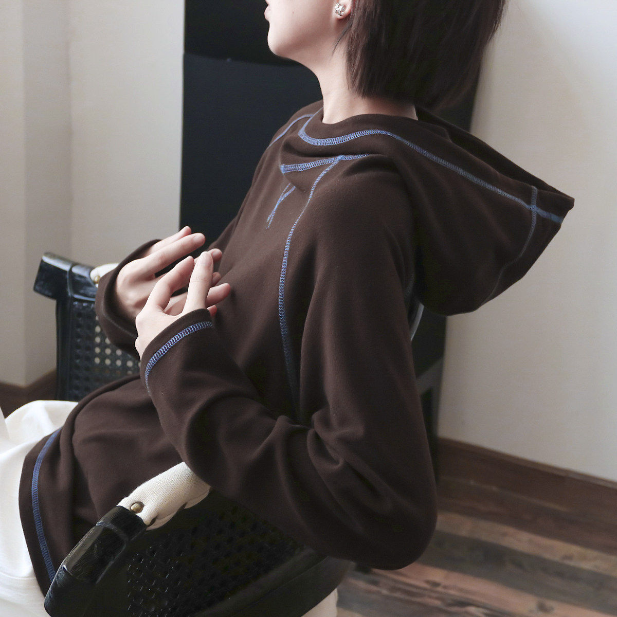 两件包邮 柔!柔!柔!撞色美 连帽加绒宽松长袖打底衫卫衣女秋冬