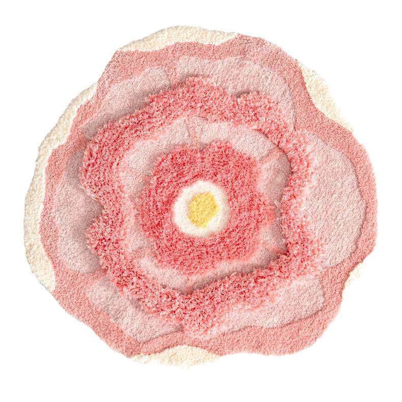 粉色玫瑰花地毯圆形地毯卧室床边毯加厚防滑客厅椅子地垫防摔垫