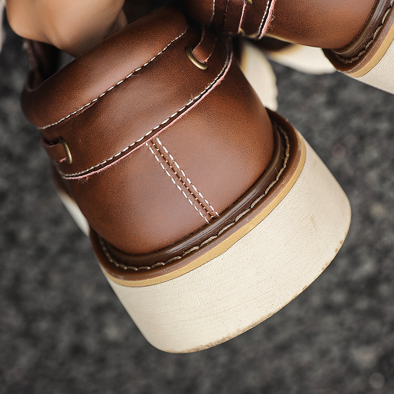 大头真皮厚底男鞋子休闲工装鞋软底耐磨英伦皮鞋低帮马丁靴帆船鞋