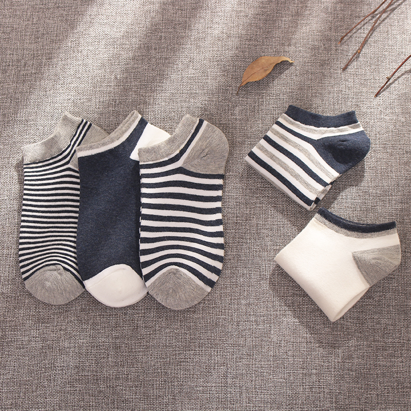 袜子男士短袜船袜夏季低帮浅口吸汗棉袜四季透气运动袜个性条纹袜