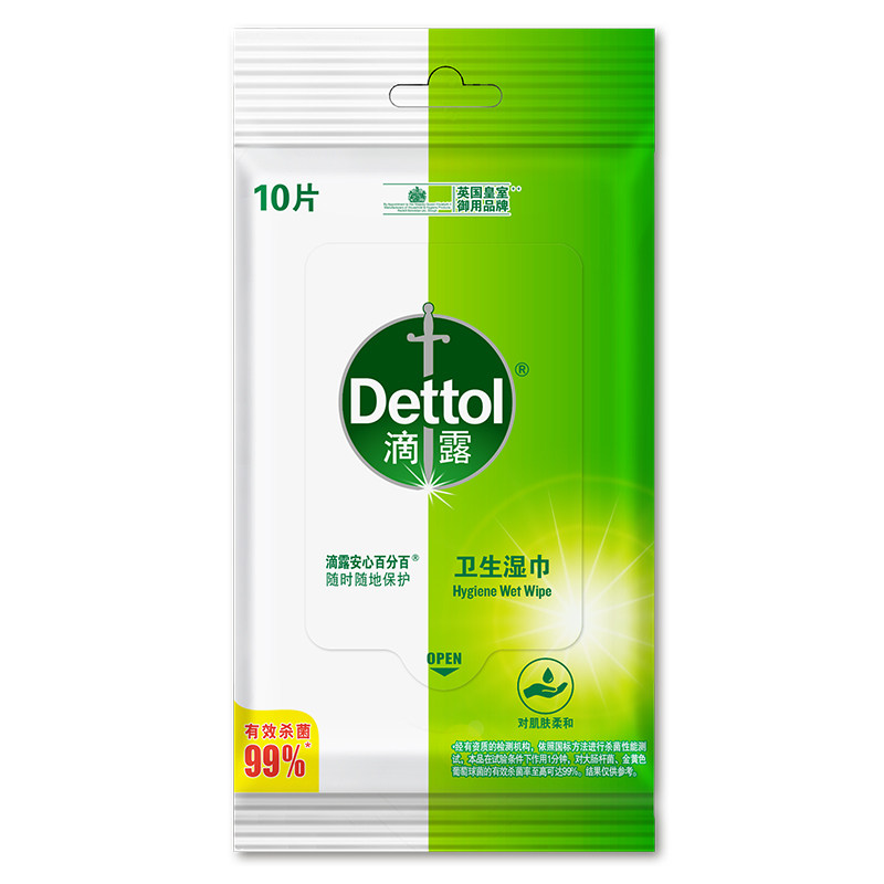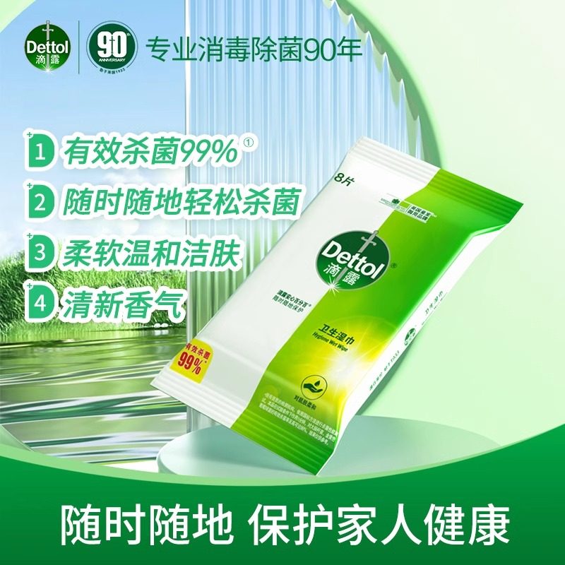 滴露卫生湿巾杀菌99%便携独立包装清洁家用非酒精飞机高铁可携带
