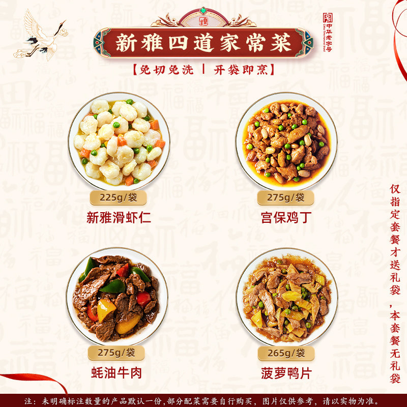 上海新雅四大名菜组合蚝油牛肉速冻半成品预制菜虾仁酒店年夜饭