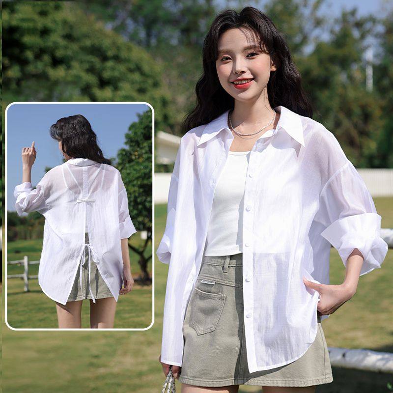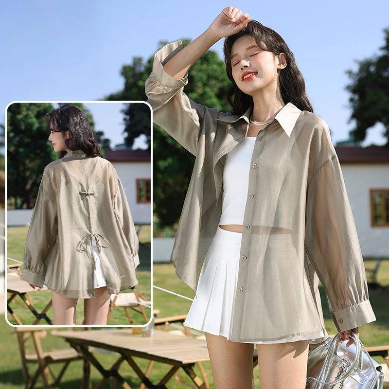 班尼路防晒开衫薄款衬衫女吊带连衣裙外搭罩衫夏冰丝高级感外套H