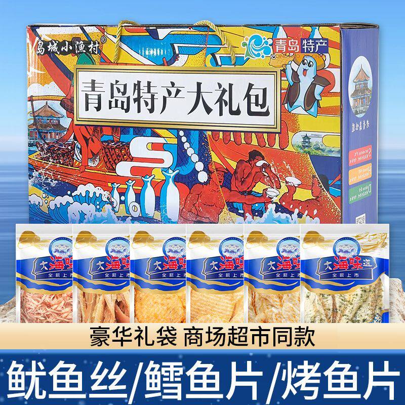 山东青岛特产即食鱿鱼丝烤鳕鱼片海鲜零食手提袋礼包礼盒伴手送礼
