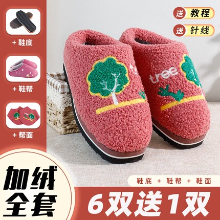全套手工棉鞋半成品材料拖鞋底防滑耐磨鞋底鞋面加绒加厚材料包