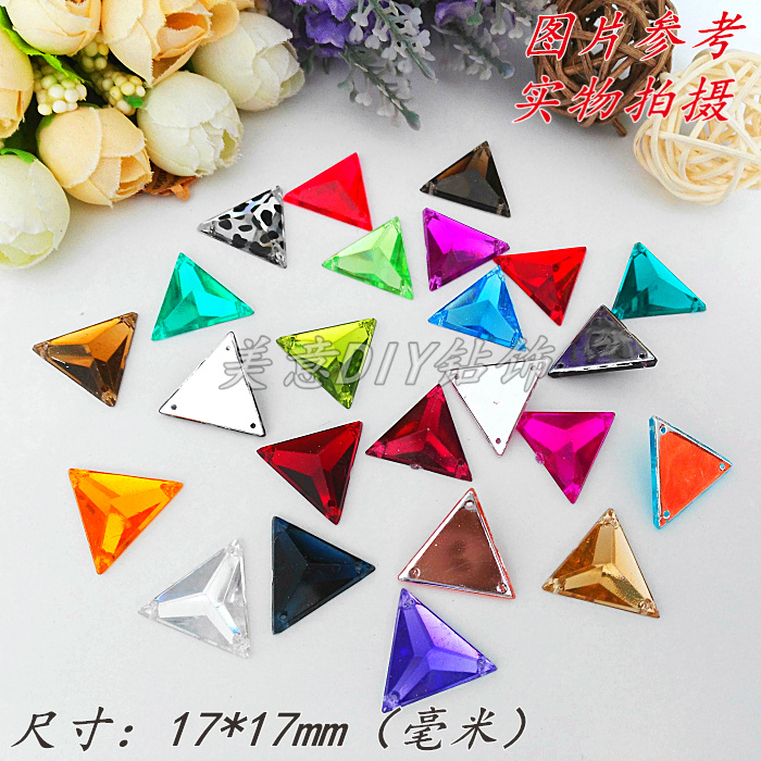 亚克力三角形17*17双孔钻平底钻DIY缝衣服手缝钻 缝衣领婚纱水钻