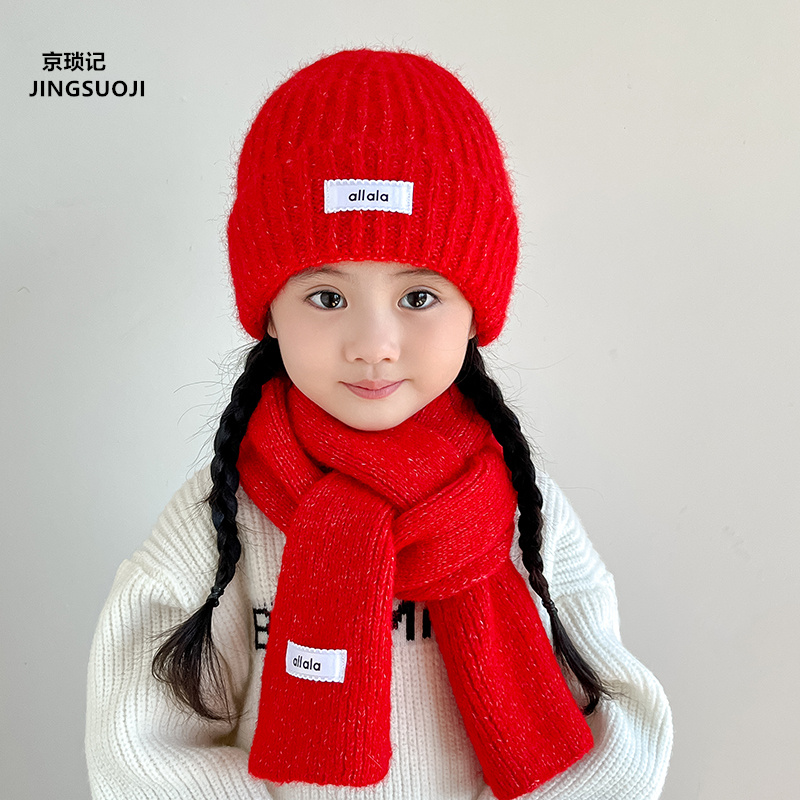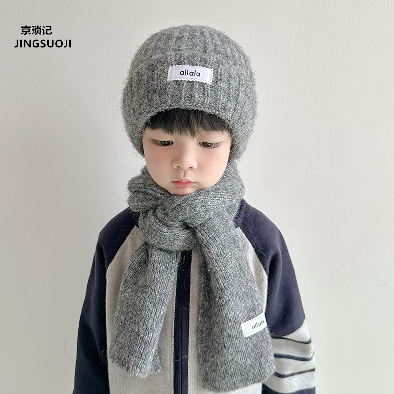 儿童帽子围巾两件套秋冬季男女童针织毛线帽保暖字母宝宝套头护耳