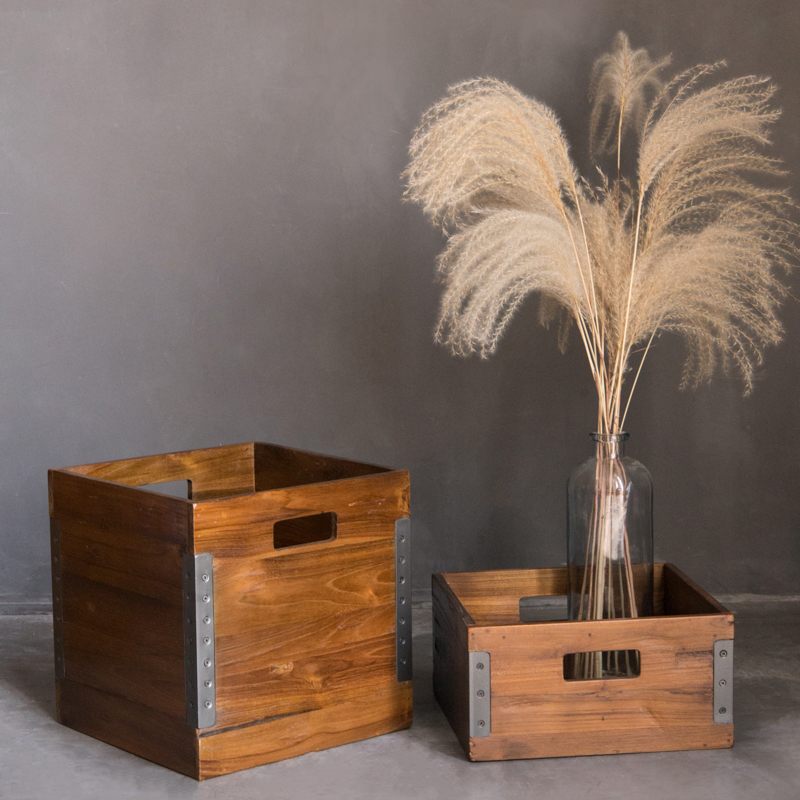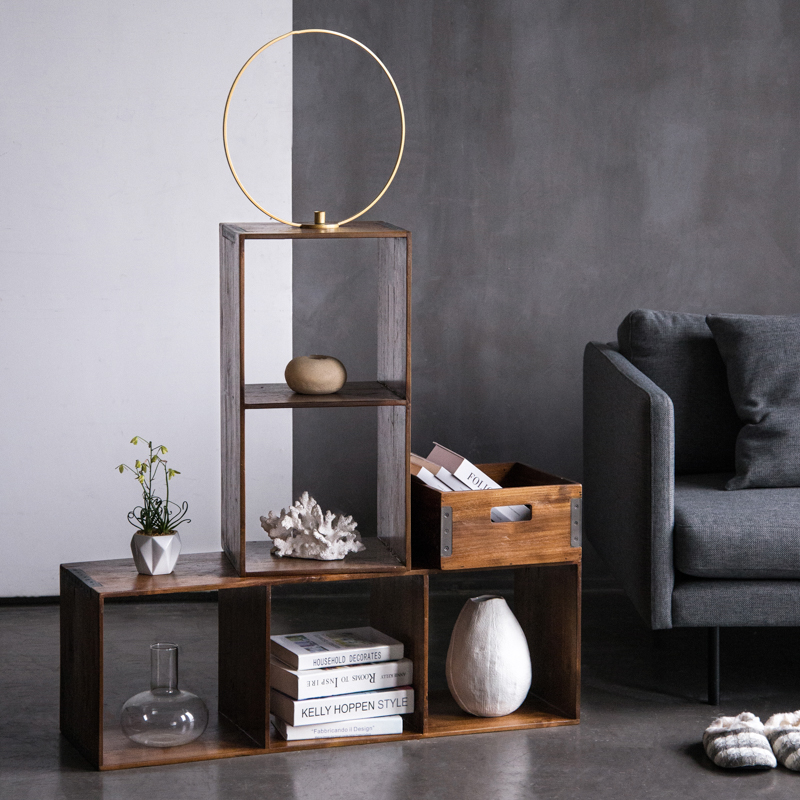 Mountain Living进口老柚木家具实木置物架组合落地置物箱格子柜