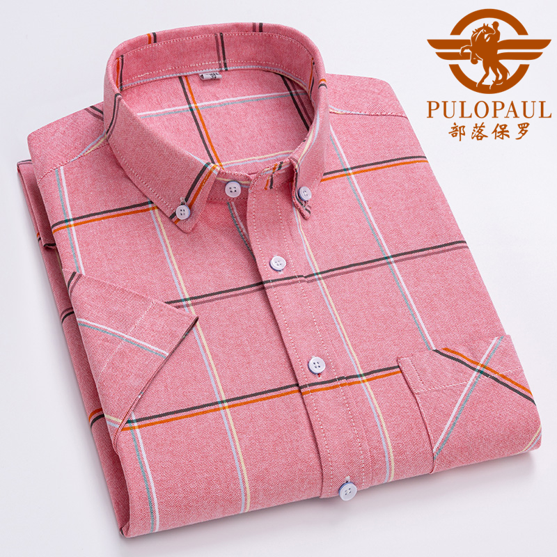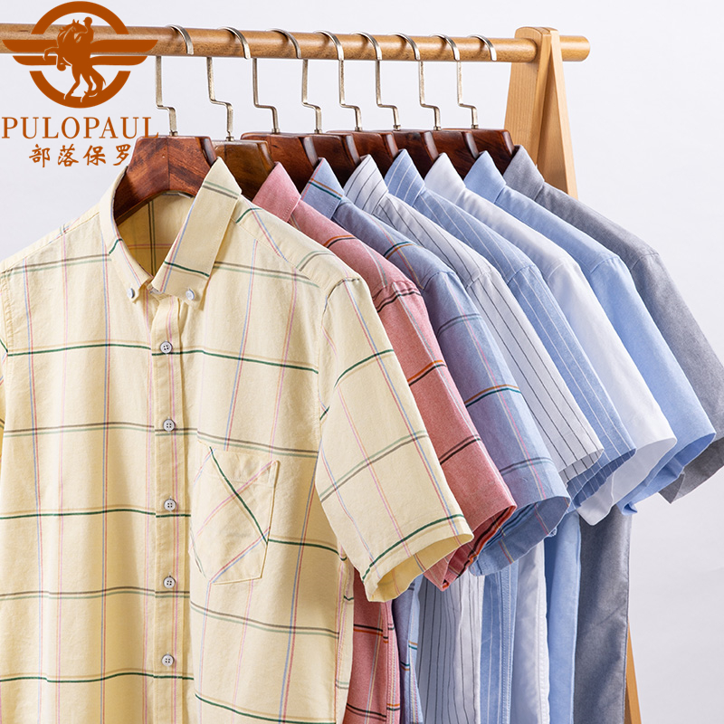 保罗纯棉牛津纺短袖衬衫