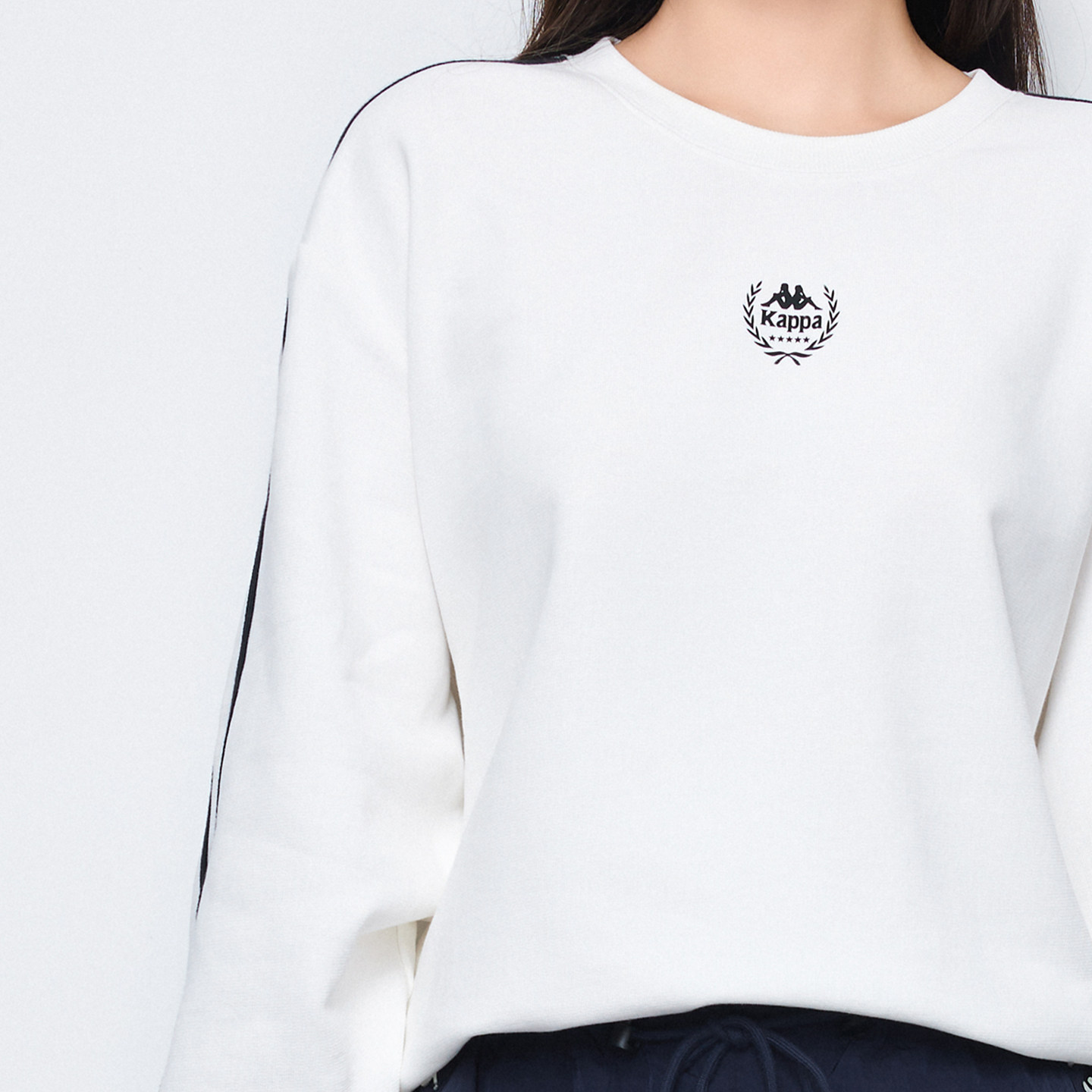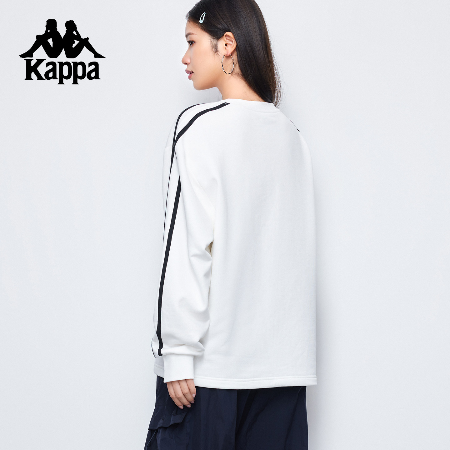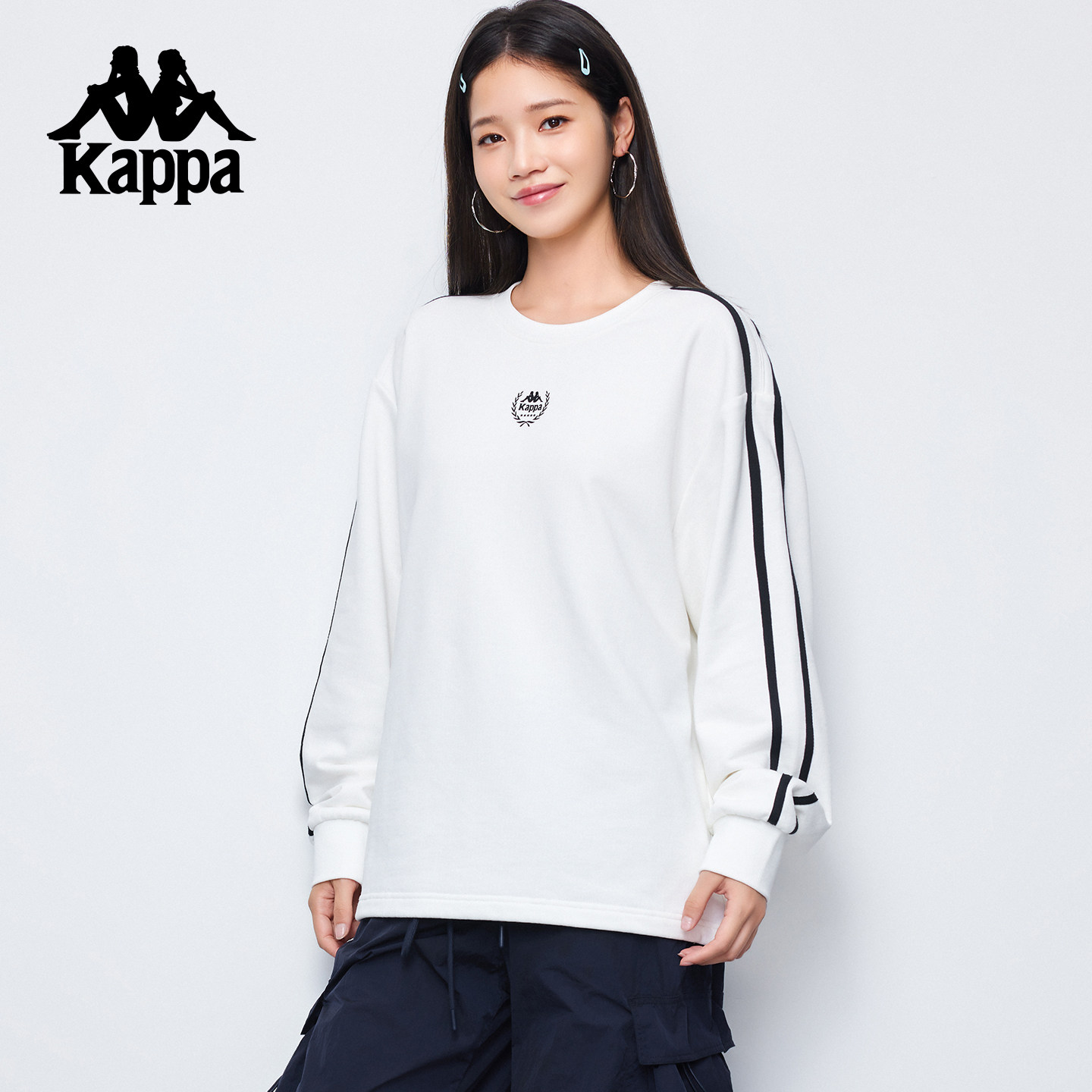 Kappa卡帕 白色卫衣圆领无帽套头衫冬新款休闲宽松百搭上衣长袖女