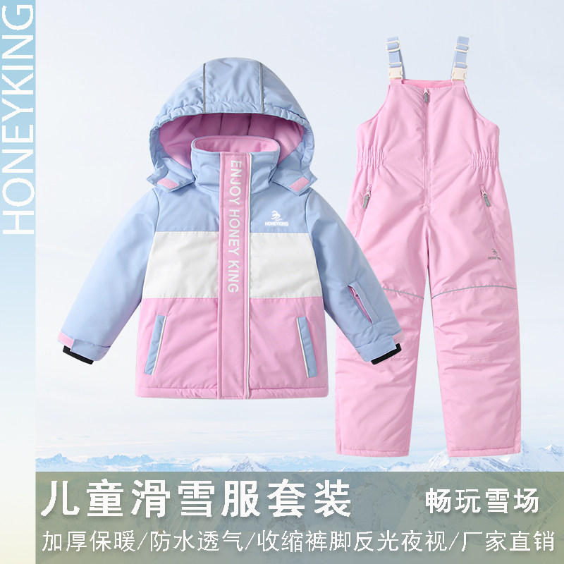 honeyking儿童滑雪服套装加厚保暖防水连帽外套背带裤滑雪裤雪服