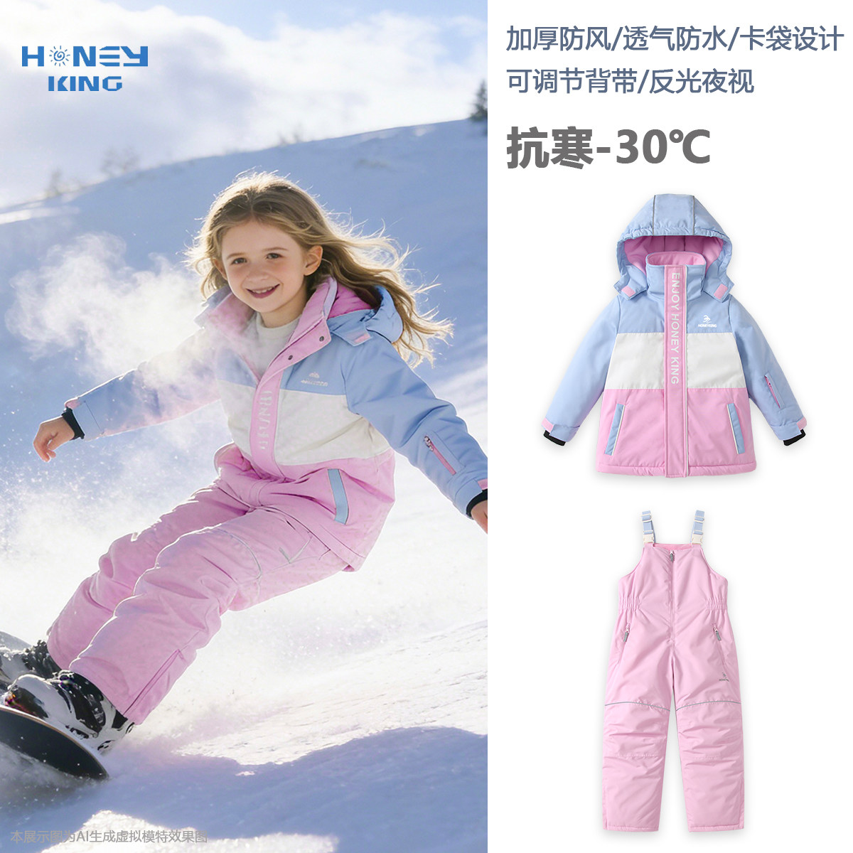 honeyking儿童滑雪服套装