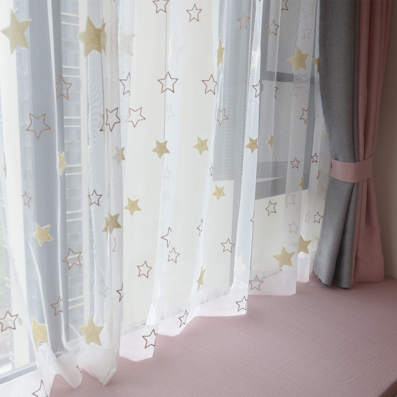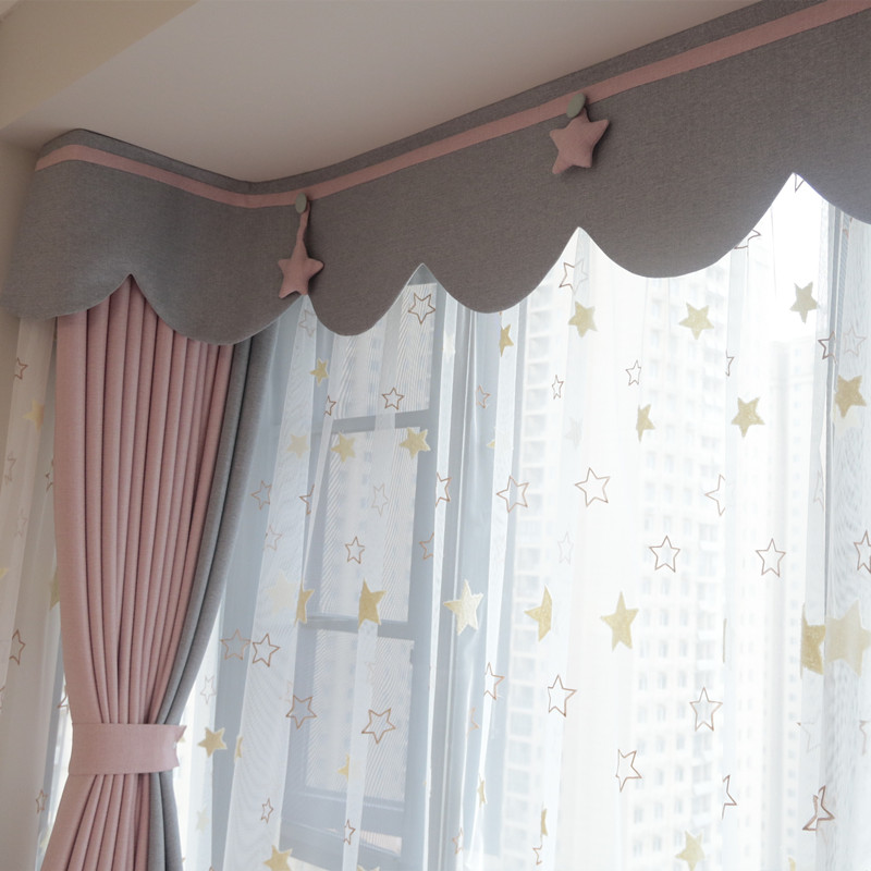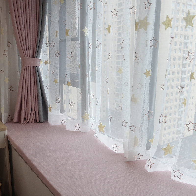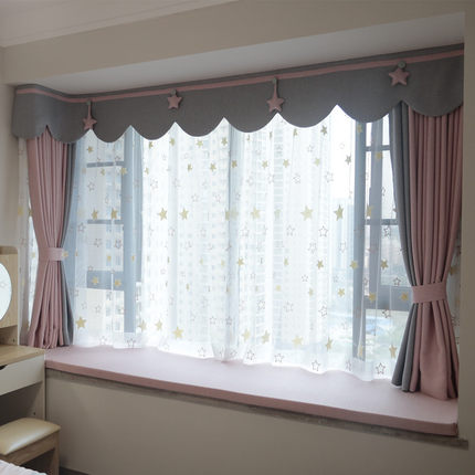 新款纯色拼接飘窗窗帘加厚棉麻卧室落地现代布料客厅阳台遮光短帘