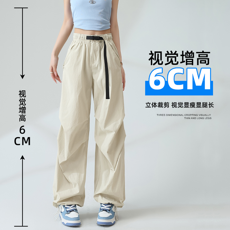 KWV真维斯夏天裤子卡其色宽松工装裤女款2025新款运动休闲小个子