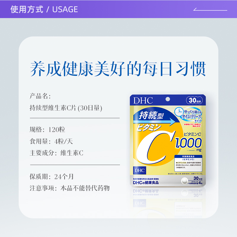 【自营】DHC持续型维生素C片120粒提升机体免疫增强抵抗 2件装
