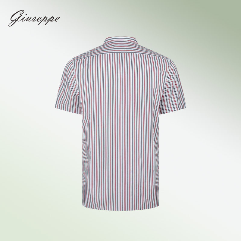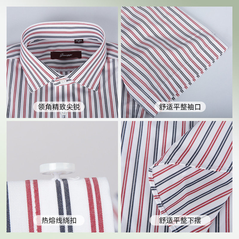【竹纤维】乔治白男士温莎领红黑条纹短袖衬衫商务休闲上衣