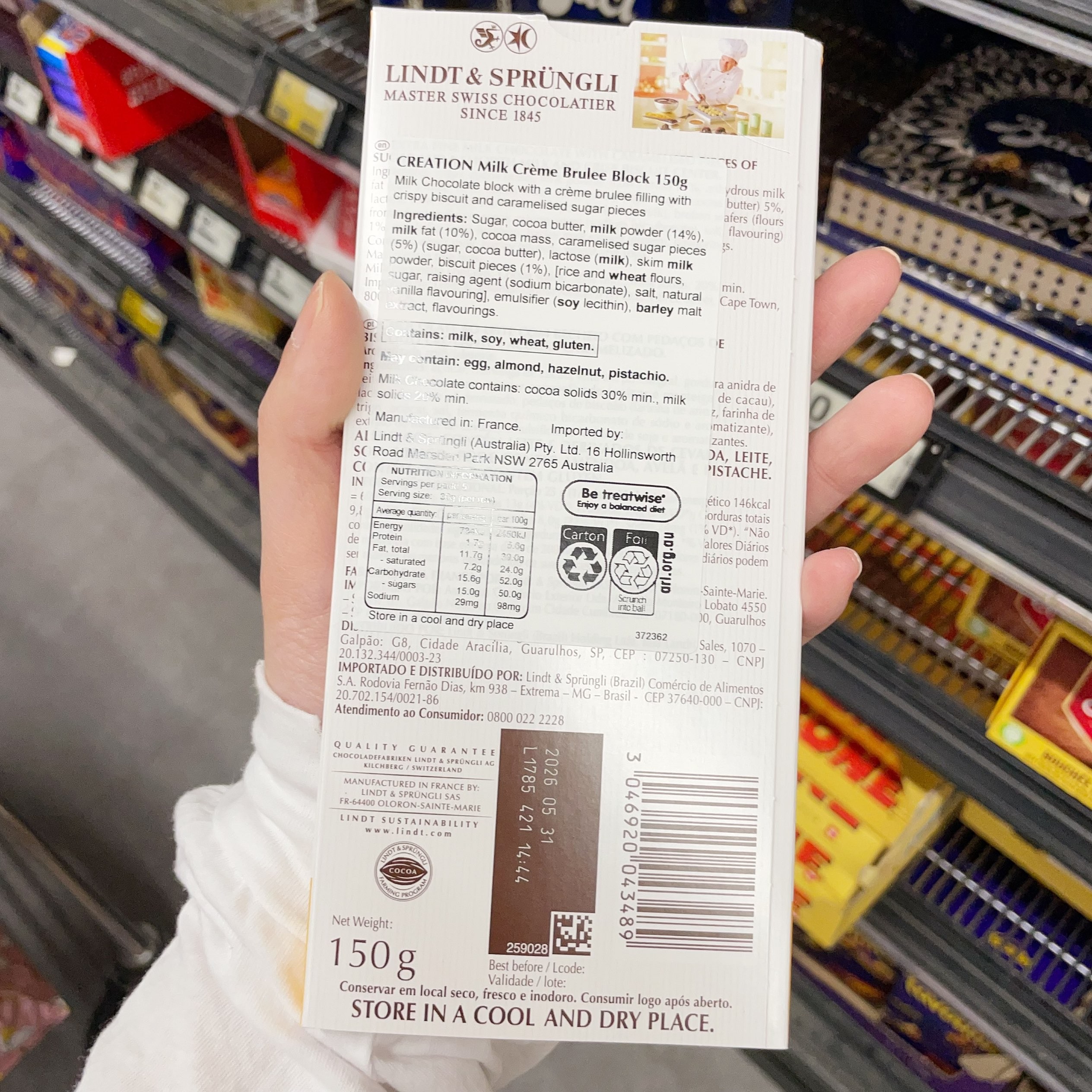 澳洲代购直邮 Lindt Creation 奢华夹心焦糖碎巧克力排块 150g