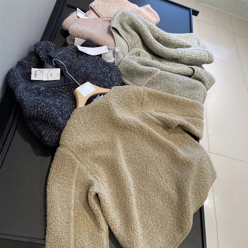 日单U!木巨199+!仿羊羔毛摇粒绒圆领开衫单排扣短款夹克外套女