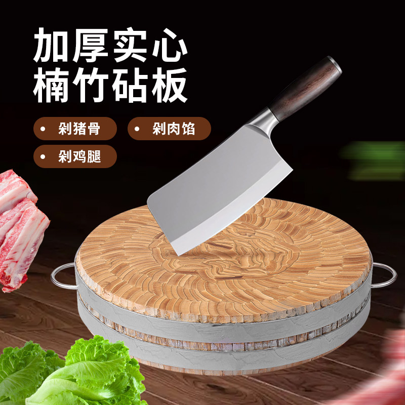 竹菜板加厚整竹圆形熟食防霉案板切菜剁骨饭店专用商用厨房占砧板