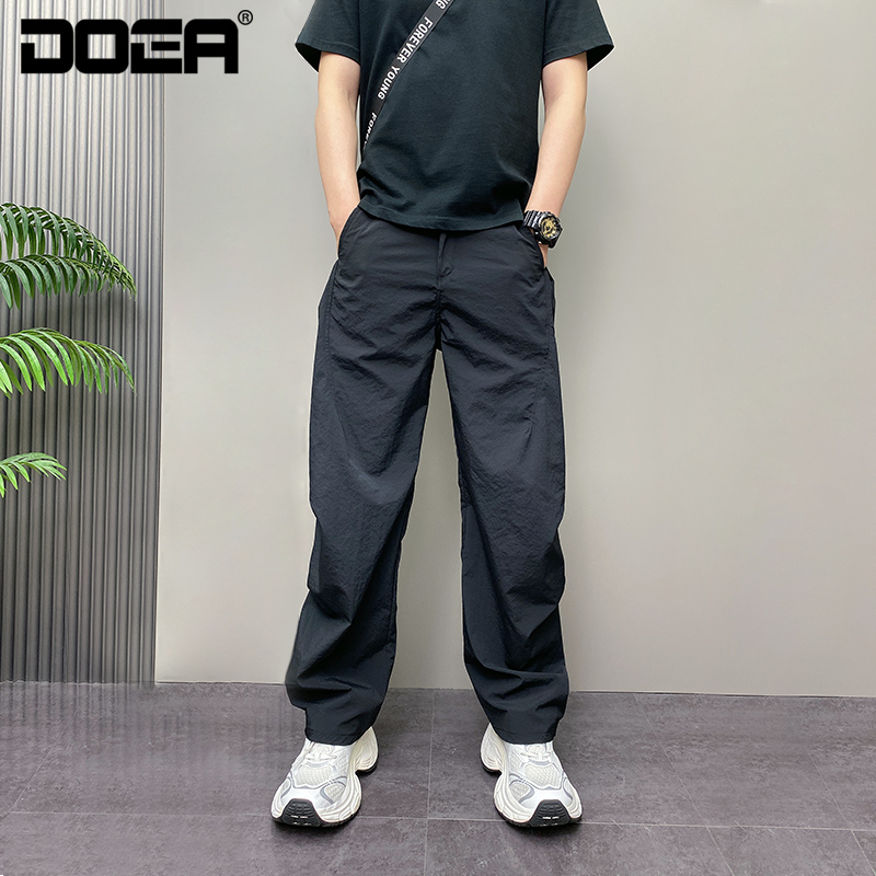 DOEA秋季新款纯色百搭松紧腰痞帅时尚简约青年男士休闲直筒阔腿裤