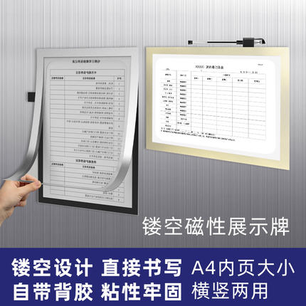 镂空磁性展示牌A4设备点检表卫生值日登记贴文件相框电梯消毒记录手写楼层检查登记上墙看板物业医院工厂学校
