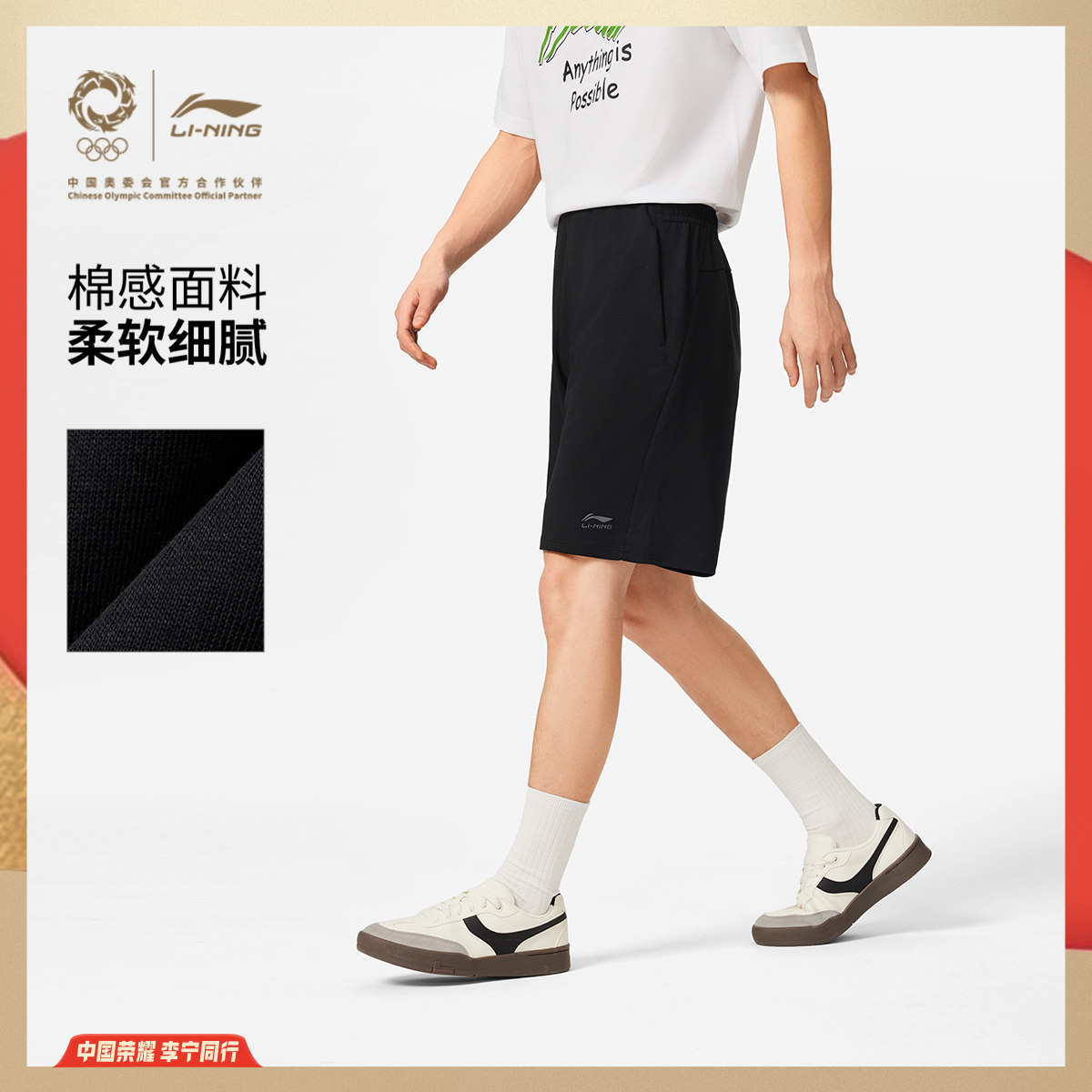 李宁荣耀系列短卫裤男士官方正品男装裤子夏季短裤针织透气运动裤