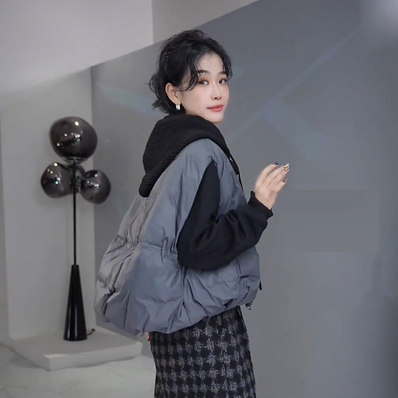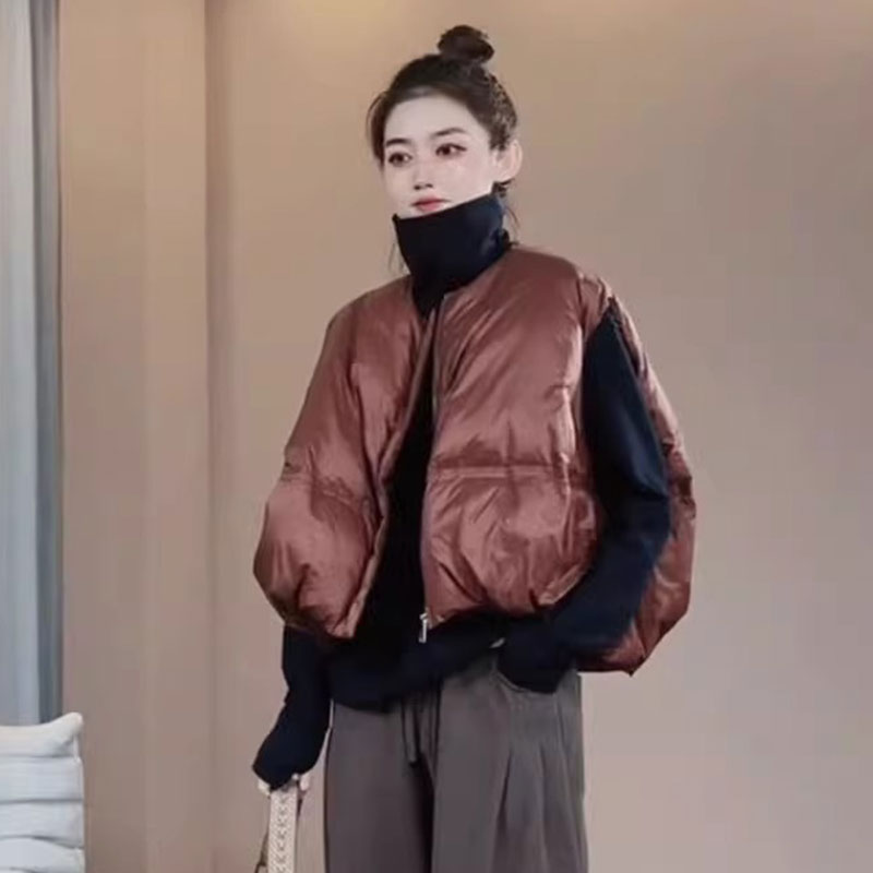 欧货圆领棉服马甲女2025秋冬新款百搭加厚面包服坎肩无袖外套潮