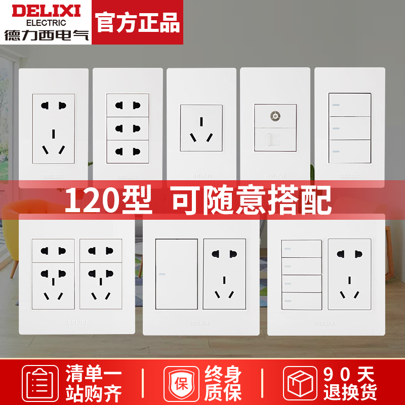 德力西120型长方形开关插座面板五孔孔模块墙壁二位单开5大小号
