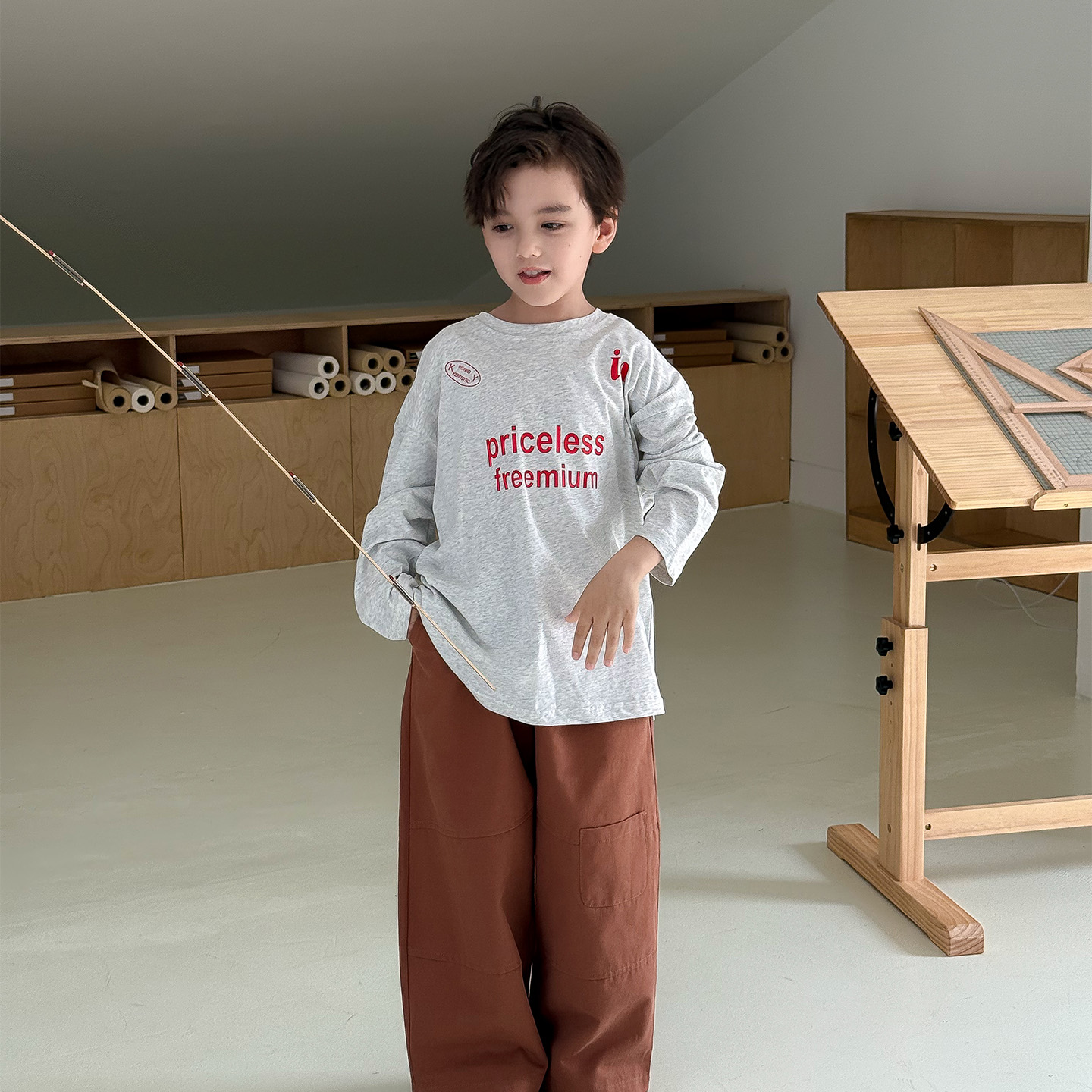 虾酱麻麻男童长袖t恤春秋装2025新款上衣纯棉韩范字母儿童装体恤