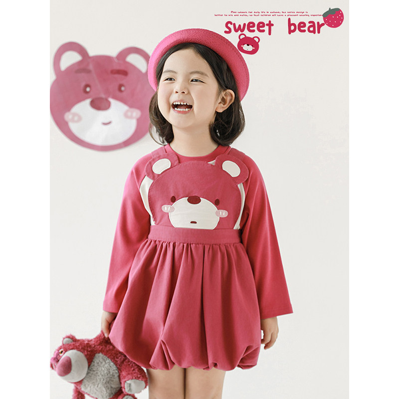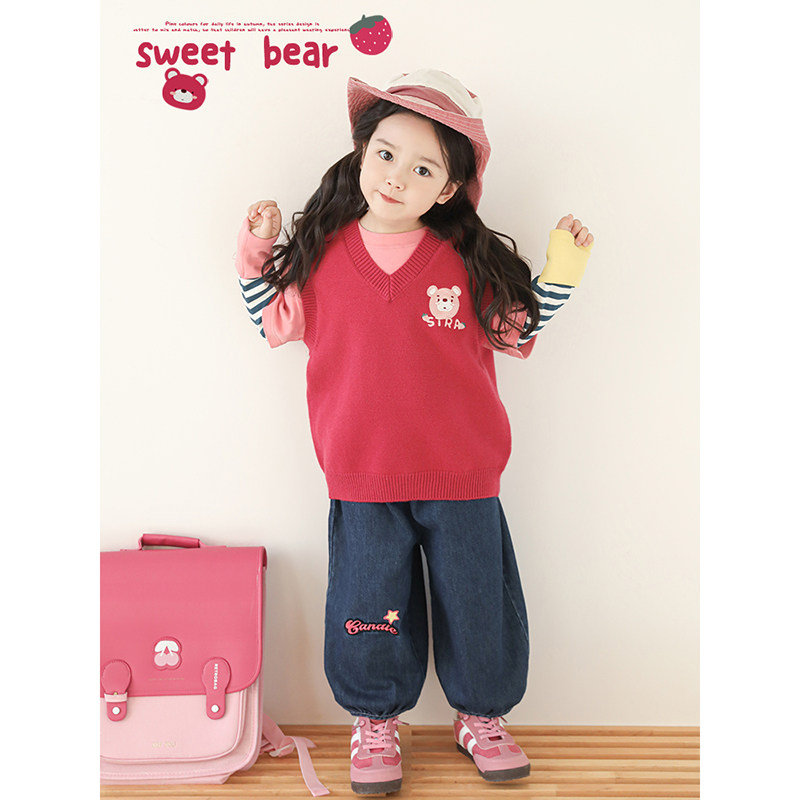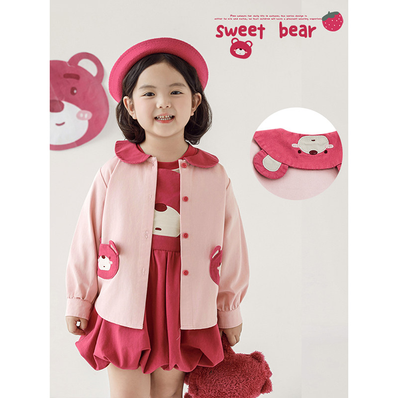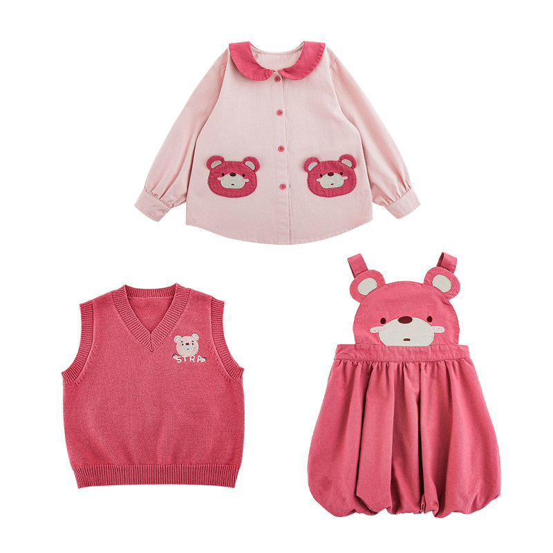 幼悠 女童粉嫩甜妹系列春季小熊娃娃翻领衬衫v领毛衣背心多件套潮