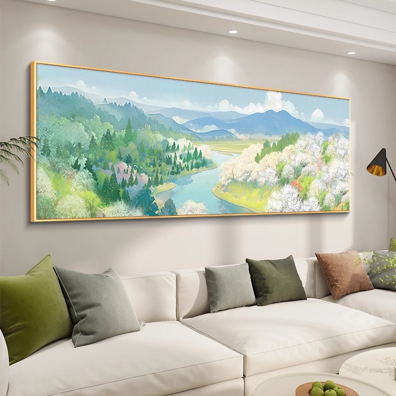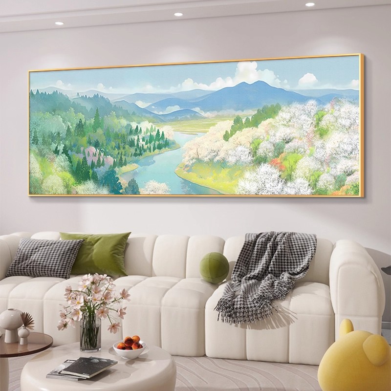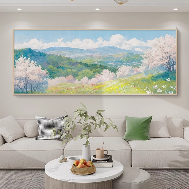 客厅大白墙装饰画原木风沙发背景墙挂画手绘油画奶油风卧室壁画
