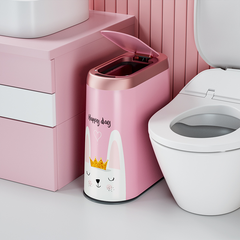 可爱智能感应式垃圾桶家用卫生间厕所夹缝专用电自动带盖轻奢纸篓