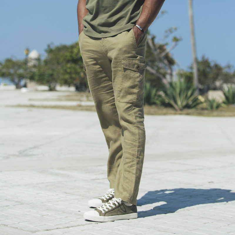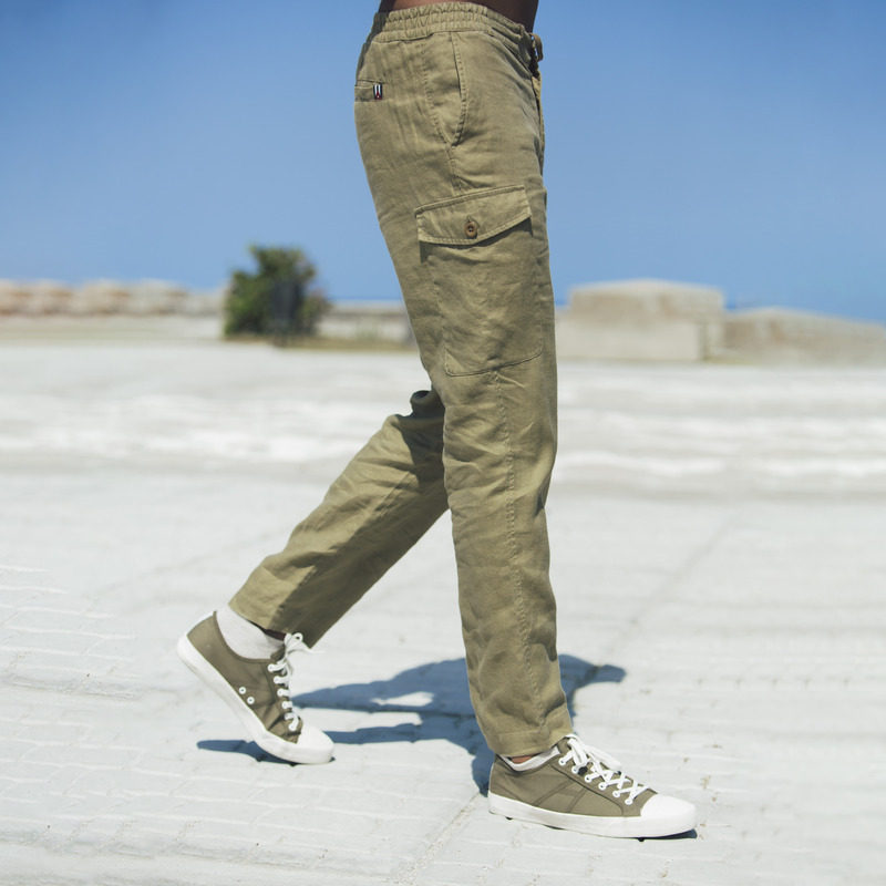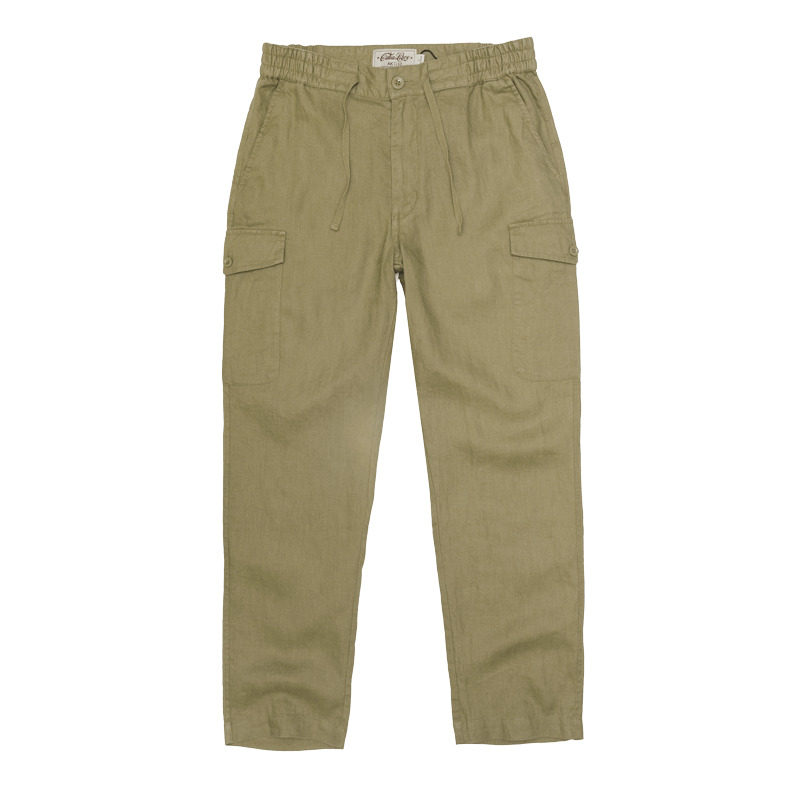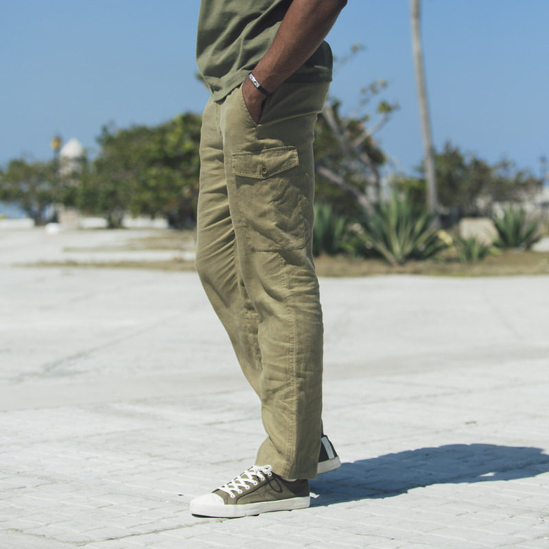 AK男装夏季新品自由古巴复古旗唛装饰亚麻休闲直筒裤长裤男