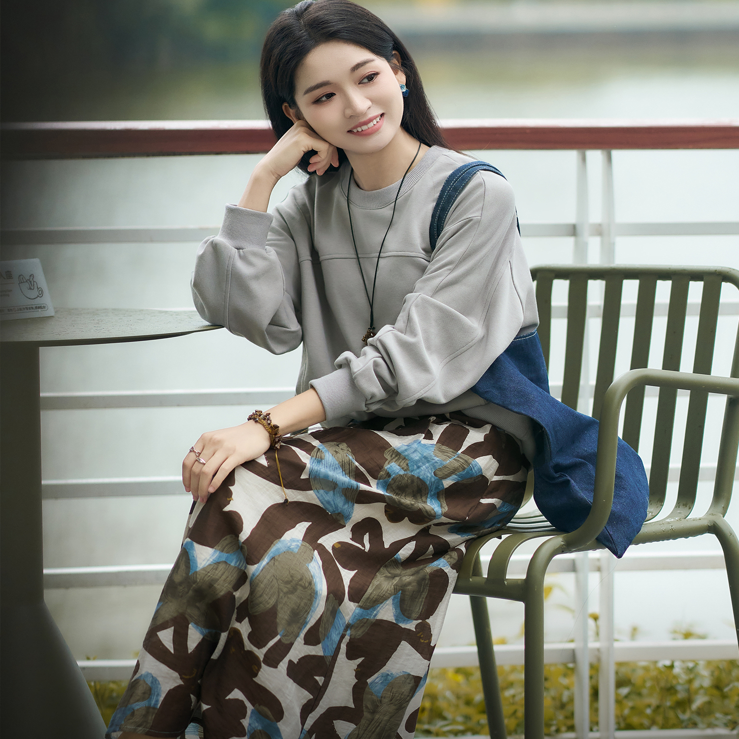 小个子中灰色上衣杏色半裙套装