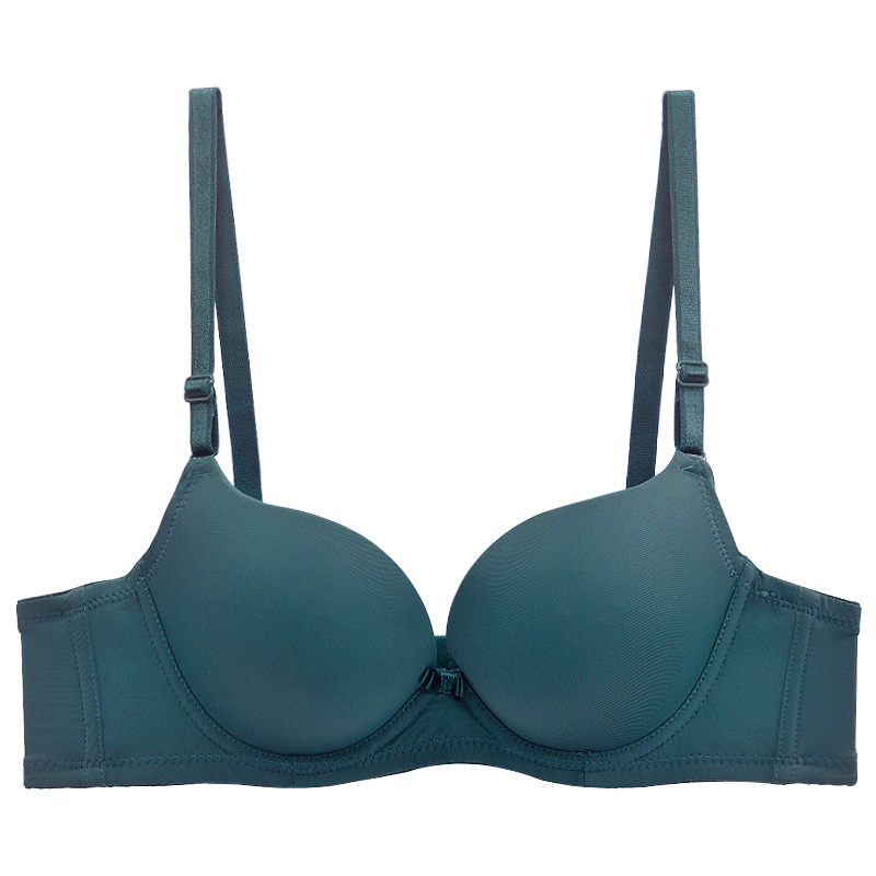 有钢圈内衣女聚拢上托小胸加厚不空杯胸罩纯色光面简约两排扣文胸