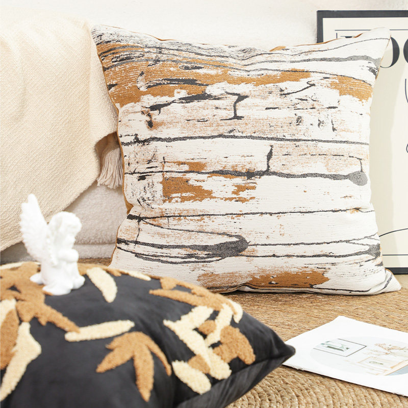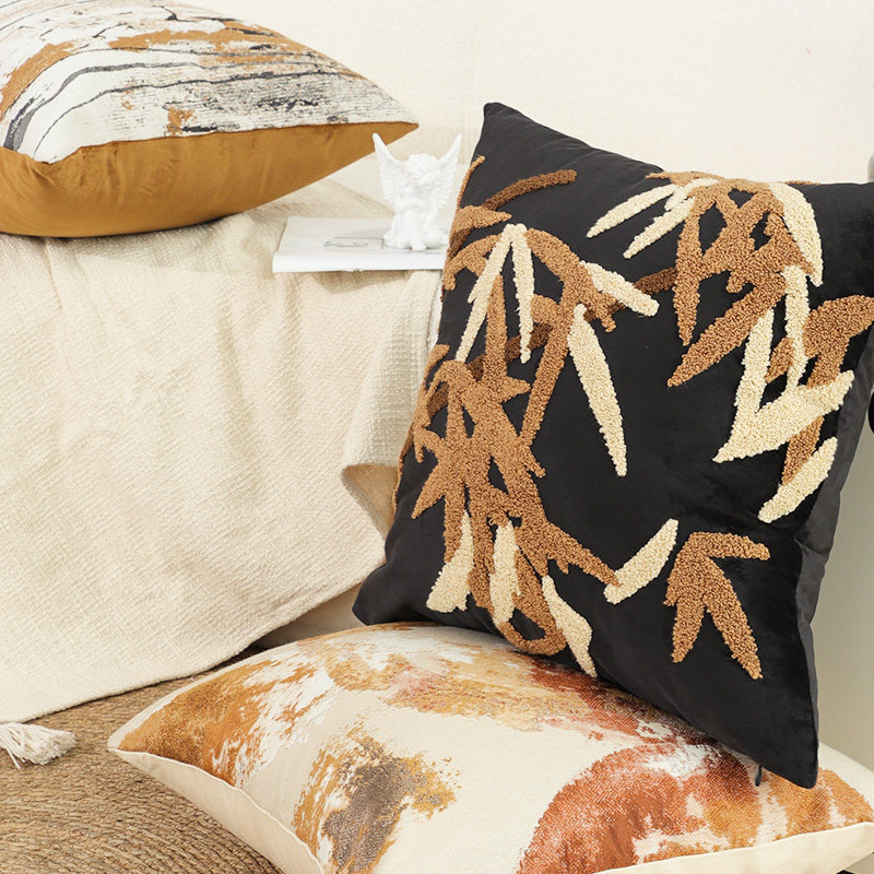 新中式棕咖竹林风抱枕客厅沙发抱枕套不含芯方枕靠枕床上用靠垫