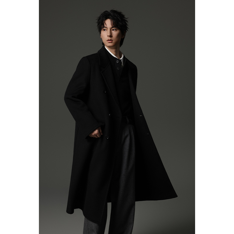 w2x大衣男款2025新款双面羊毛呢子外套男士秋冬季加厚中长款过膝