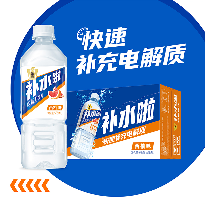 东鹏补水啦电解质饮料555ml*15瓶整箱西柚柠檬味补充盐类水分饮品