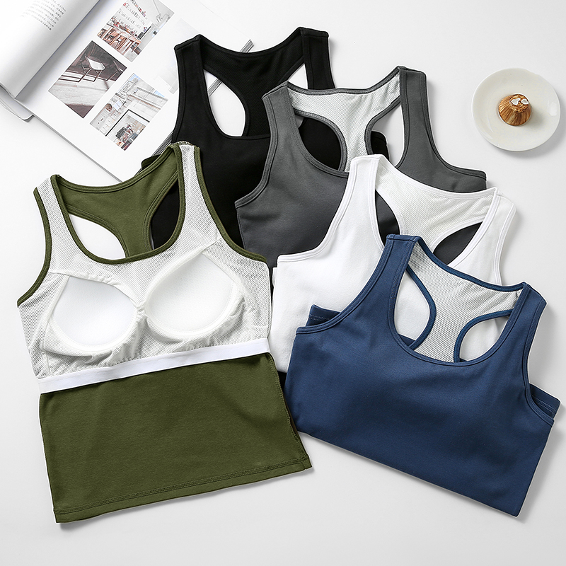 工字背心女夏纯棉带胸垫吊带文胸罩杯一体美背内衣聚拢抹胸瑜伽服
