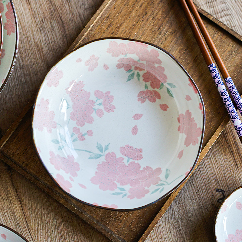 西田木雨 粉色樱花陶瓷盘子日式和风家用餐具盘子单个饭盘水果盘