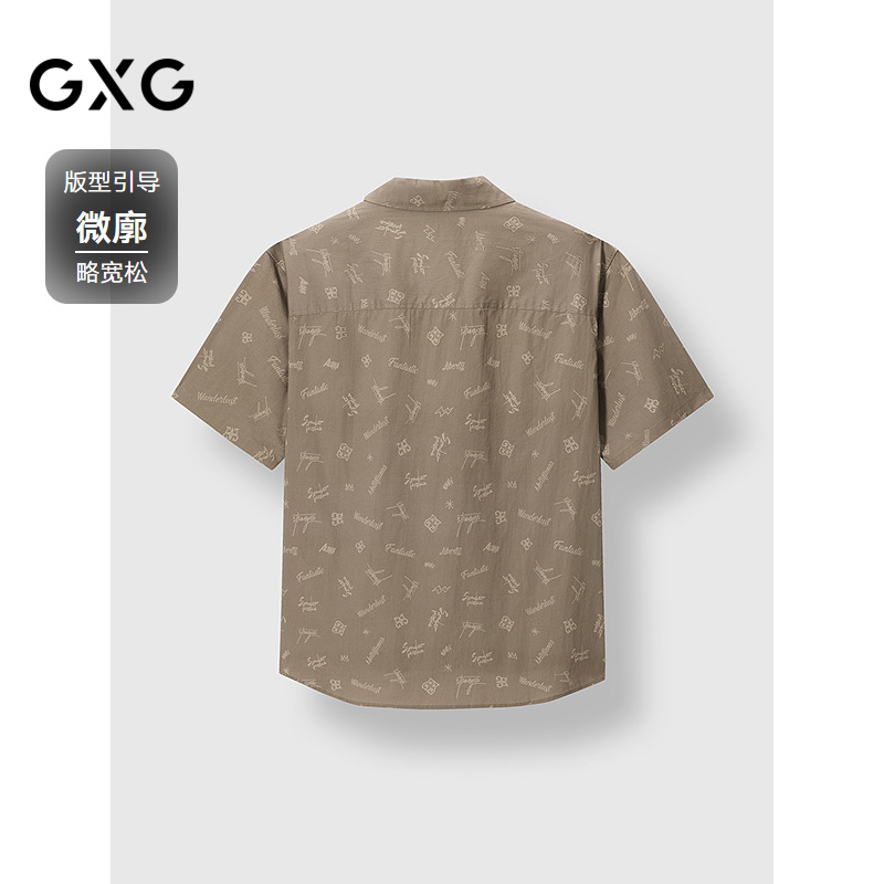 GXG男装 满印设计休闲短袖衬衫通勤男士日常薄外套 春款